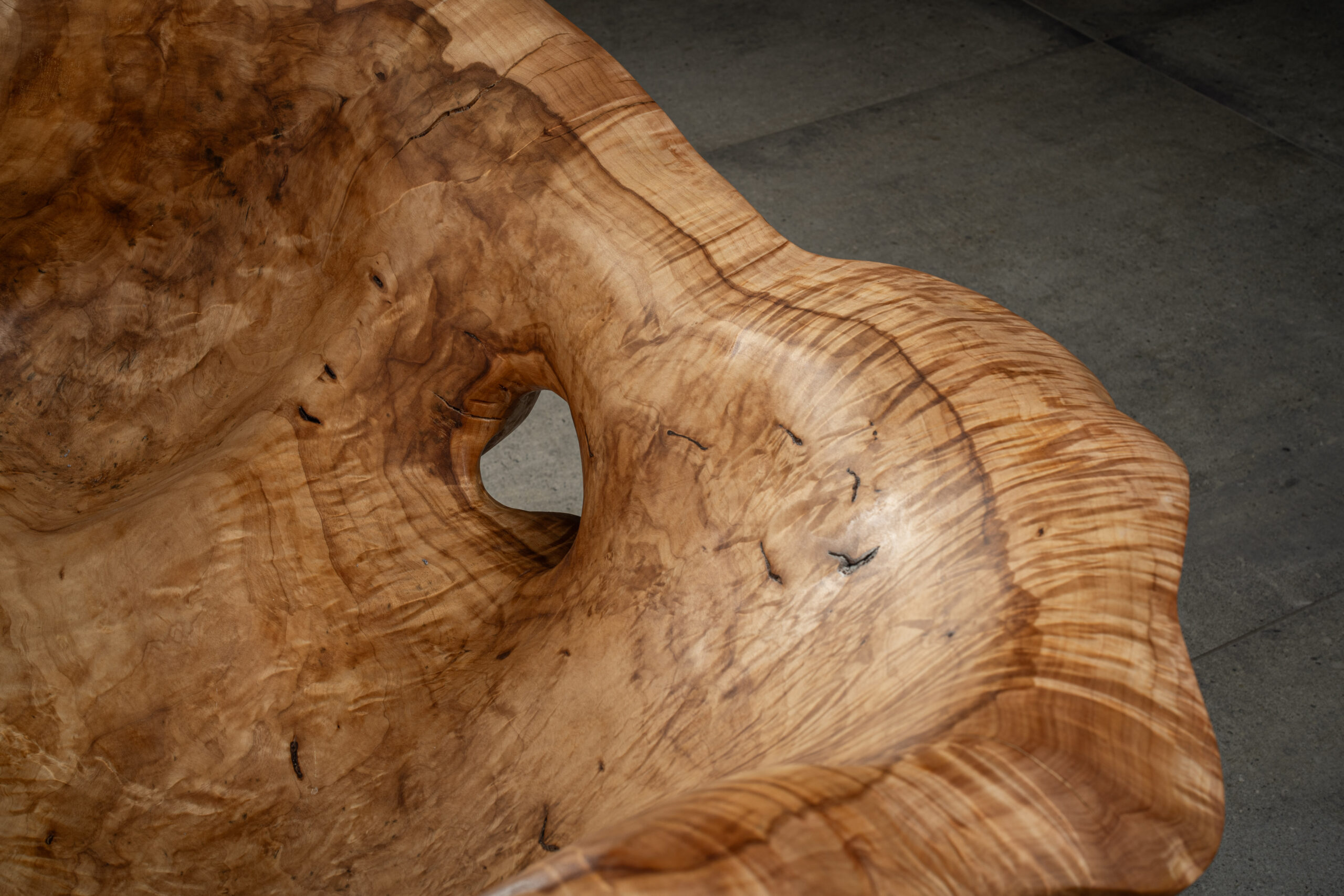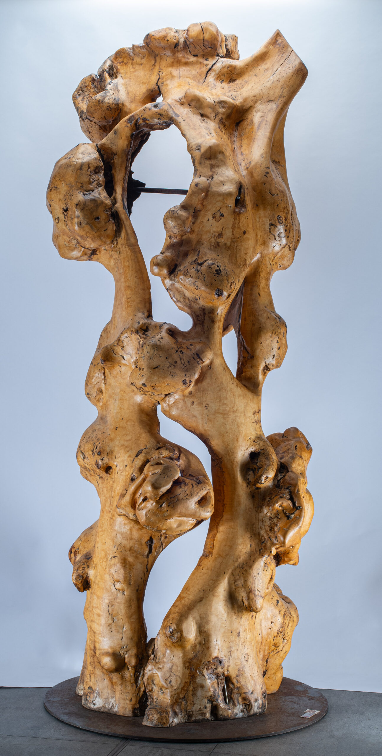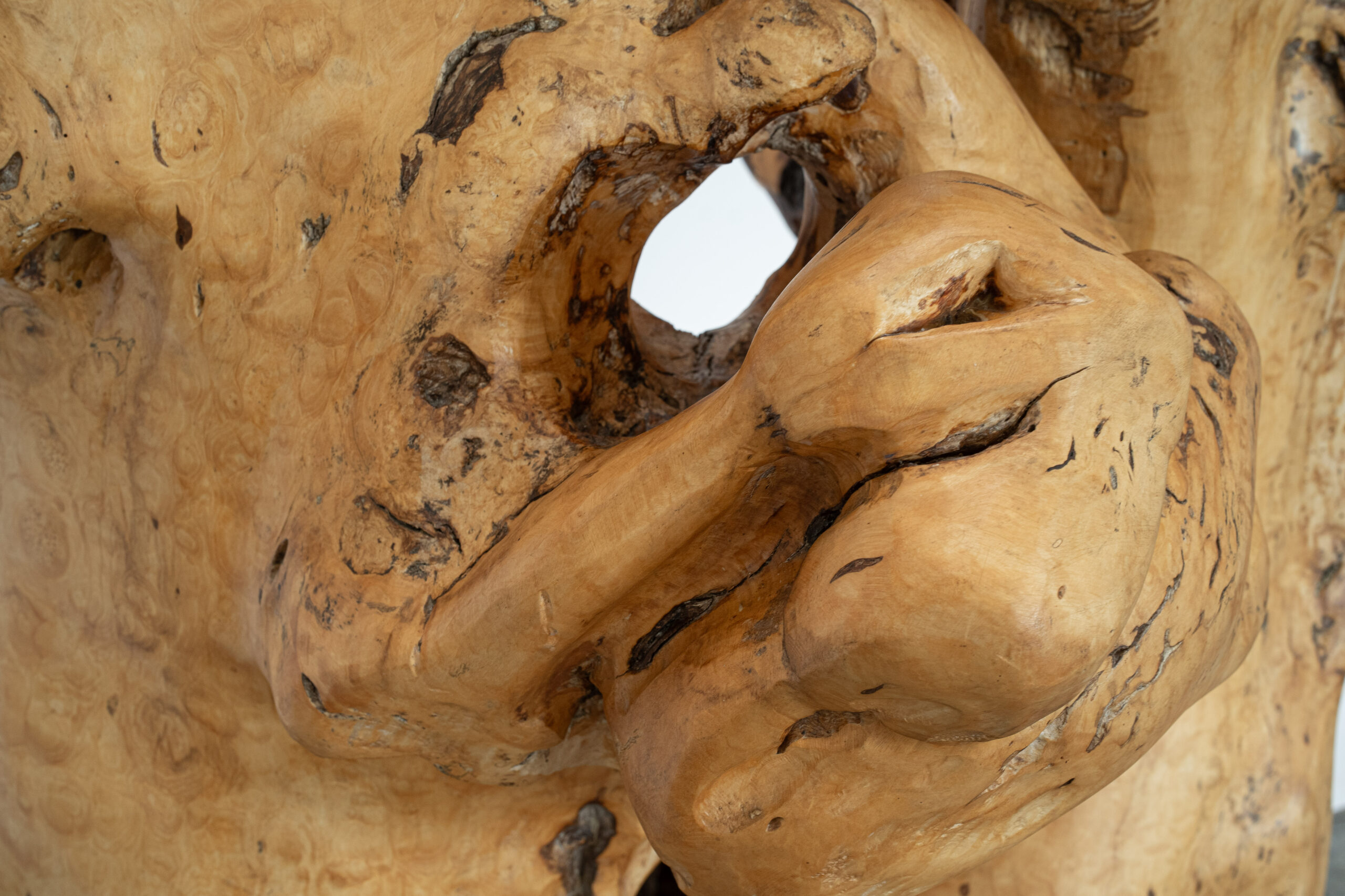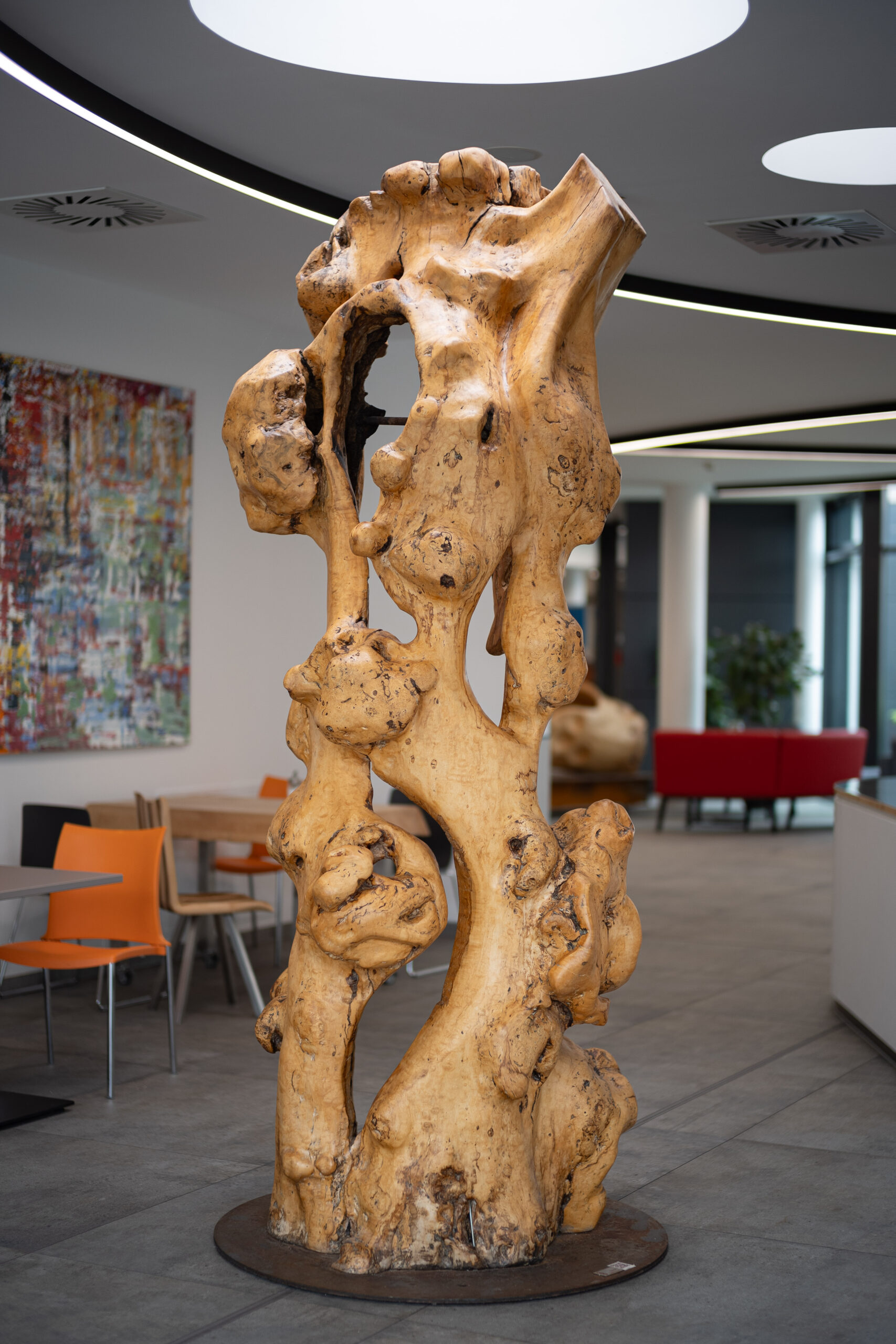 Edelstein des Waldes 1 – ehrwürdige Esche, Alter ca. 120 Jahre, Gewicht ca. 100 kg. Einzigartig verwachsen mit spannenden Einschlüssen in inneren ( Vogel).