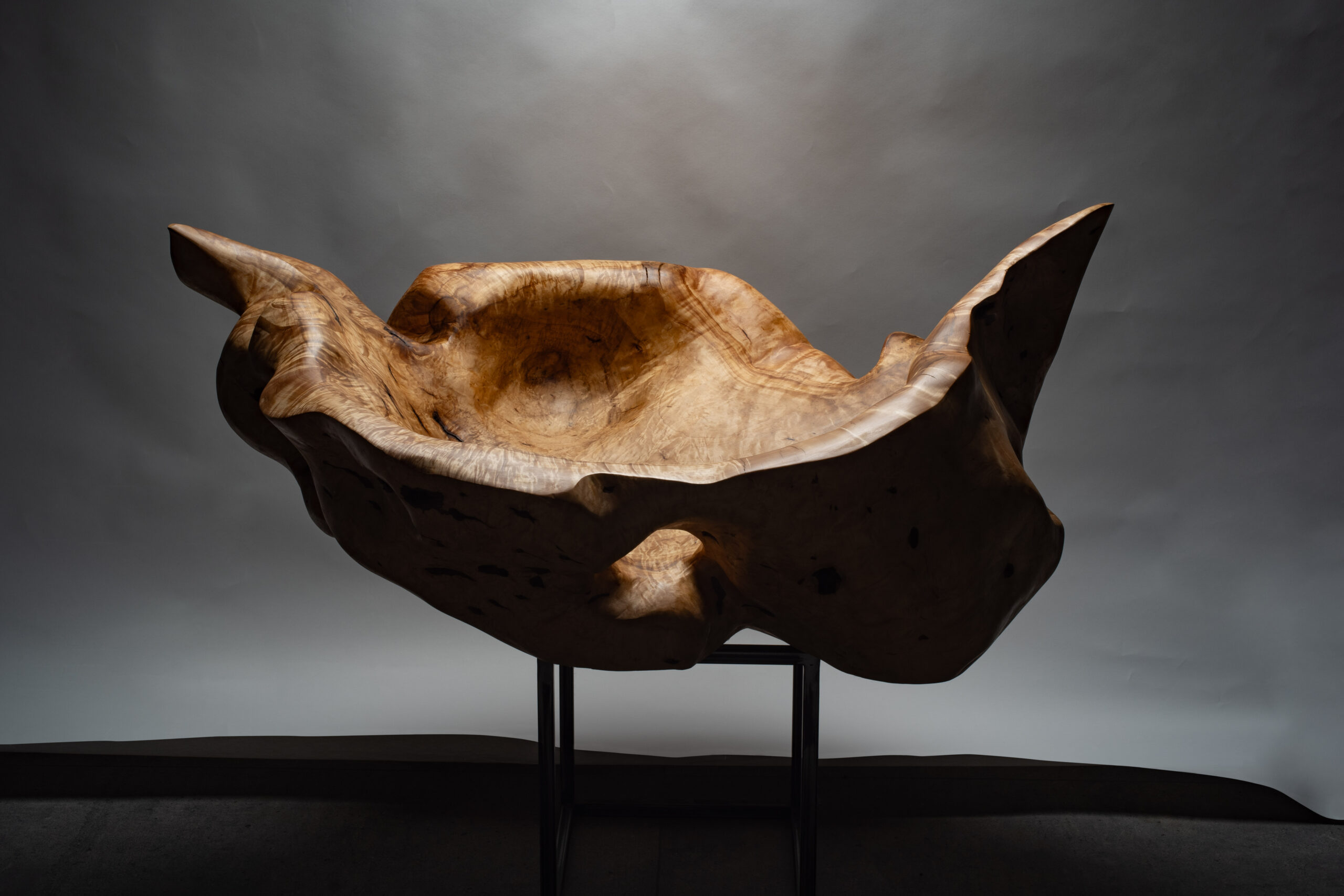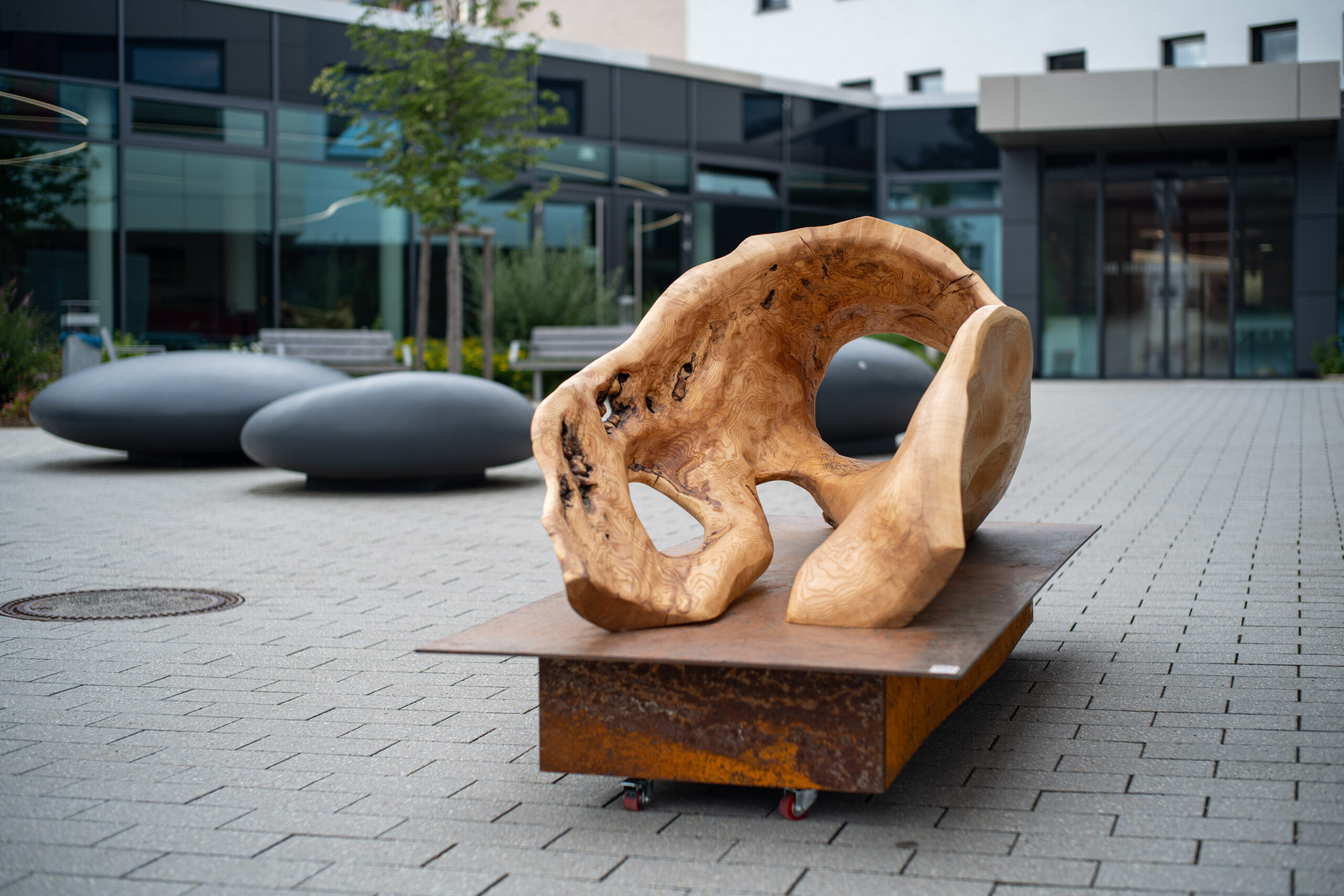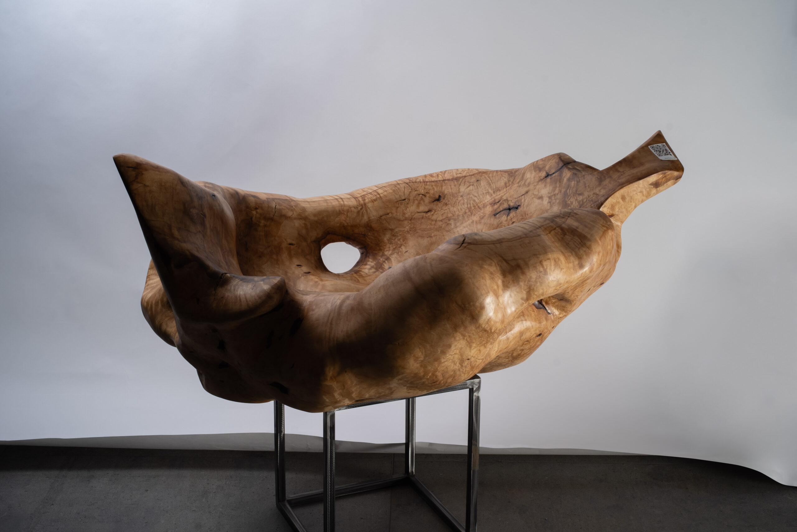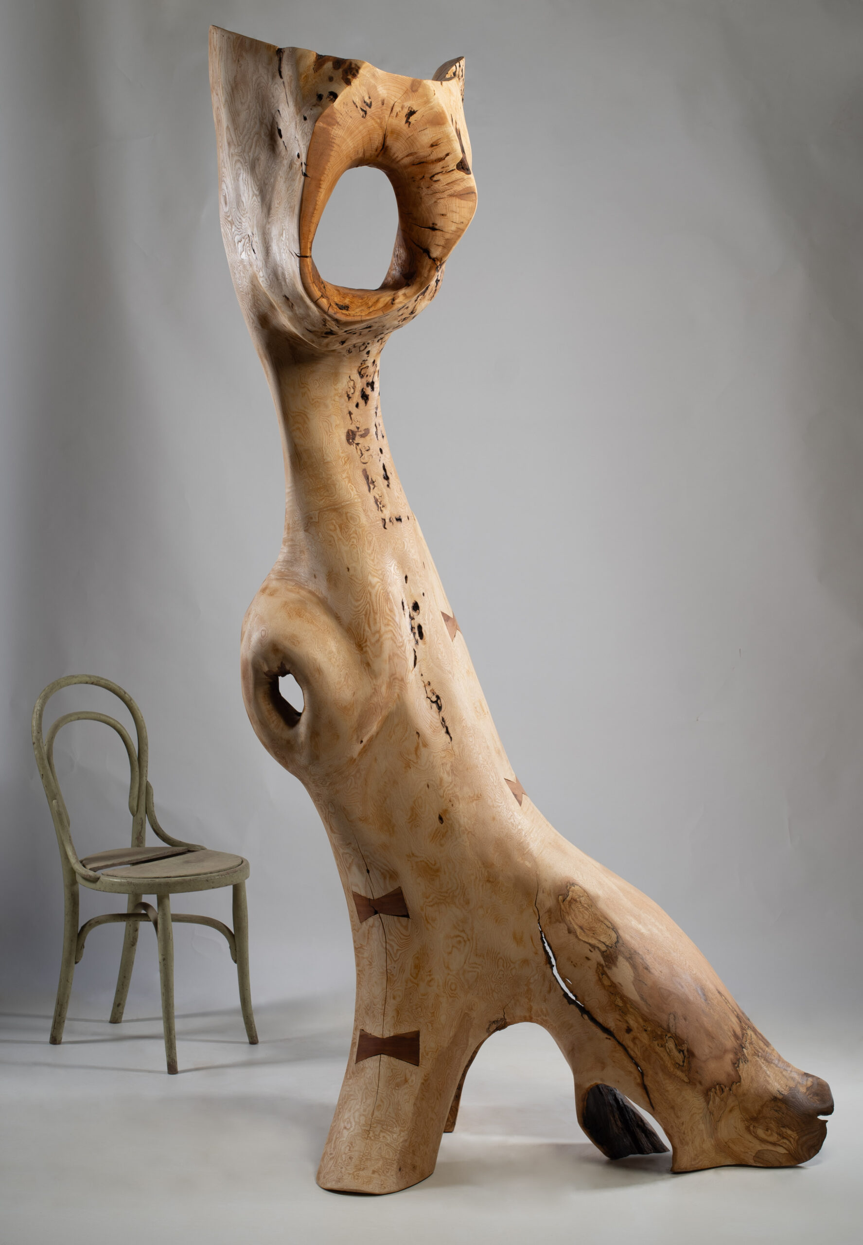 Edelstein des Waldes 1 – ehrwürdige Esche, Alter ca. 120 Jahre, Gewicht ca. 100 kg. Einzigartig verwachsen mit spannenden Einschlüssen in inneren ( Vogel).