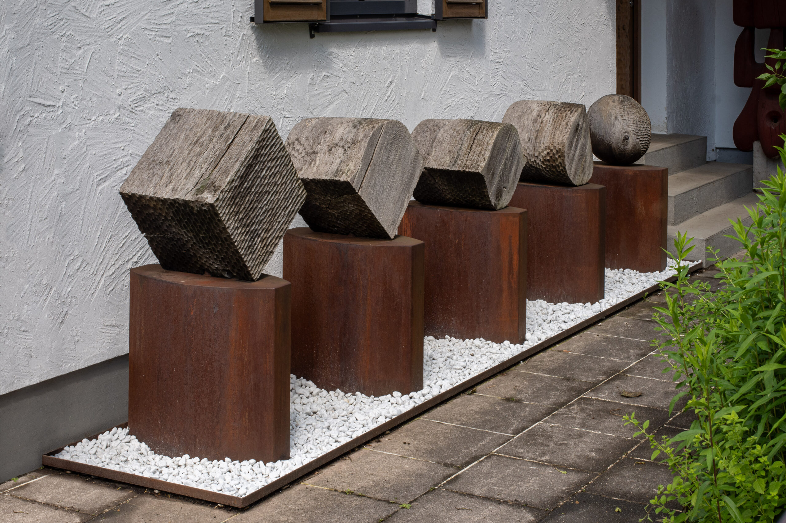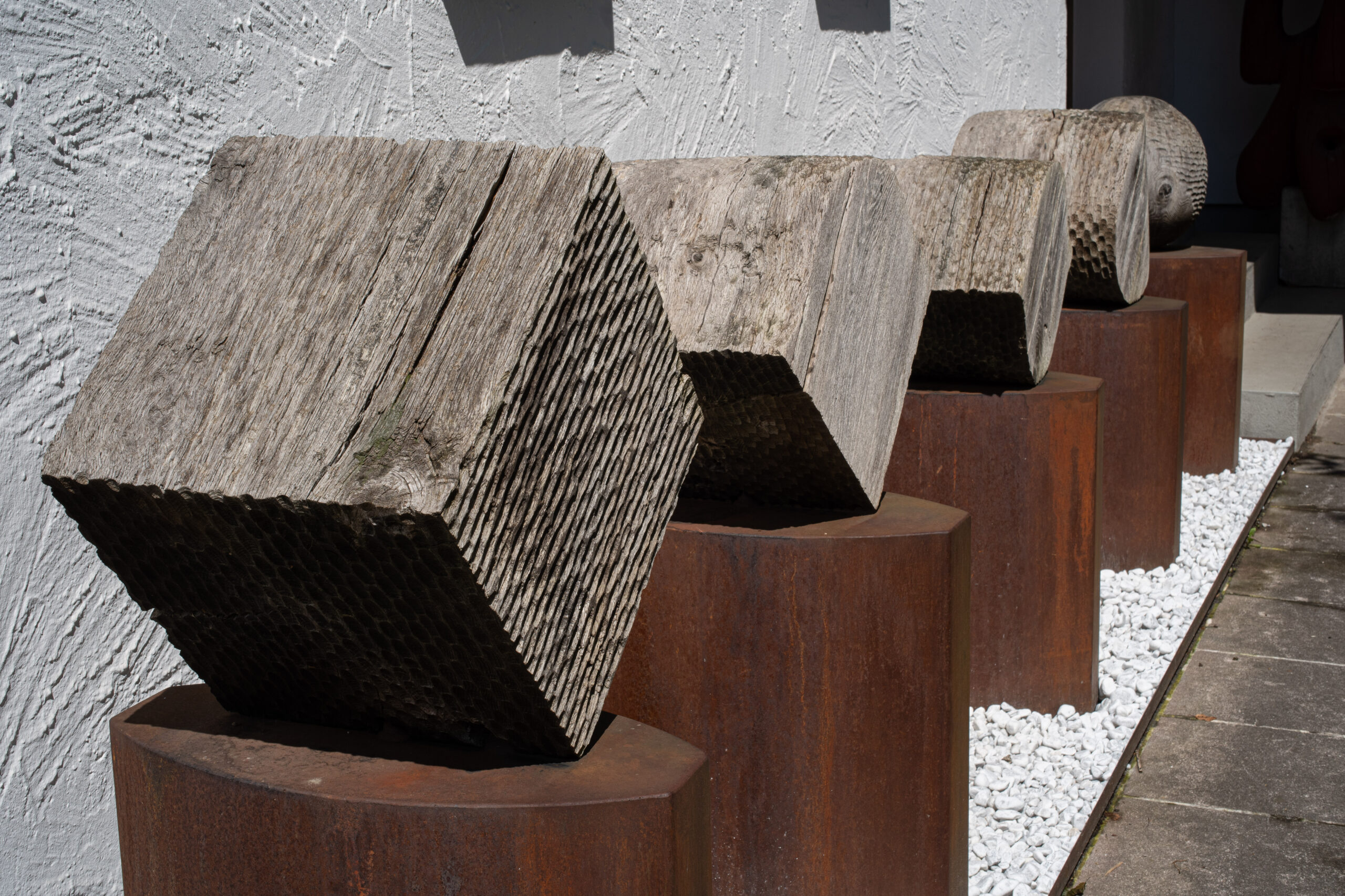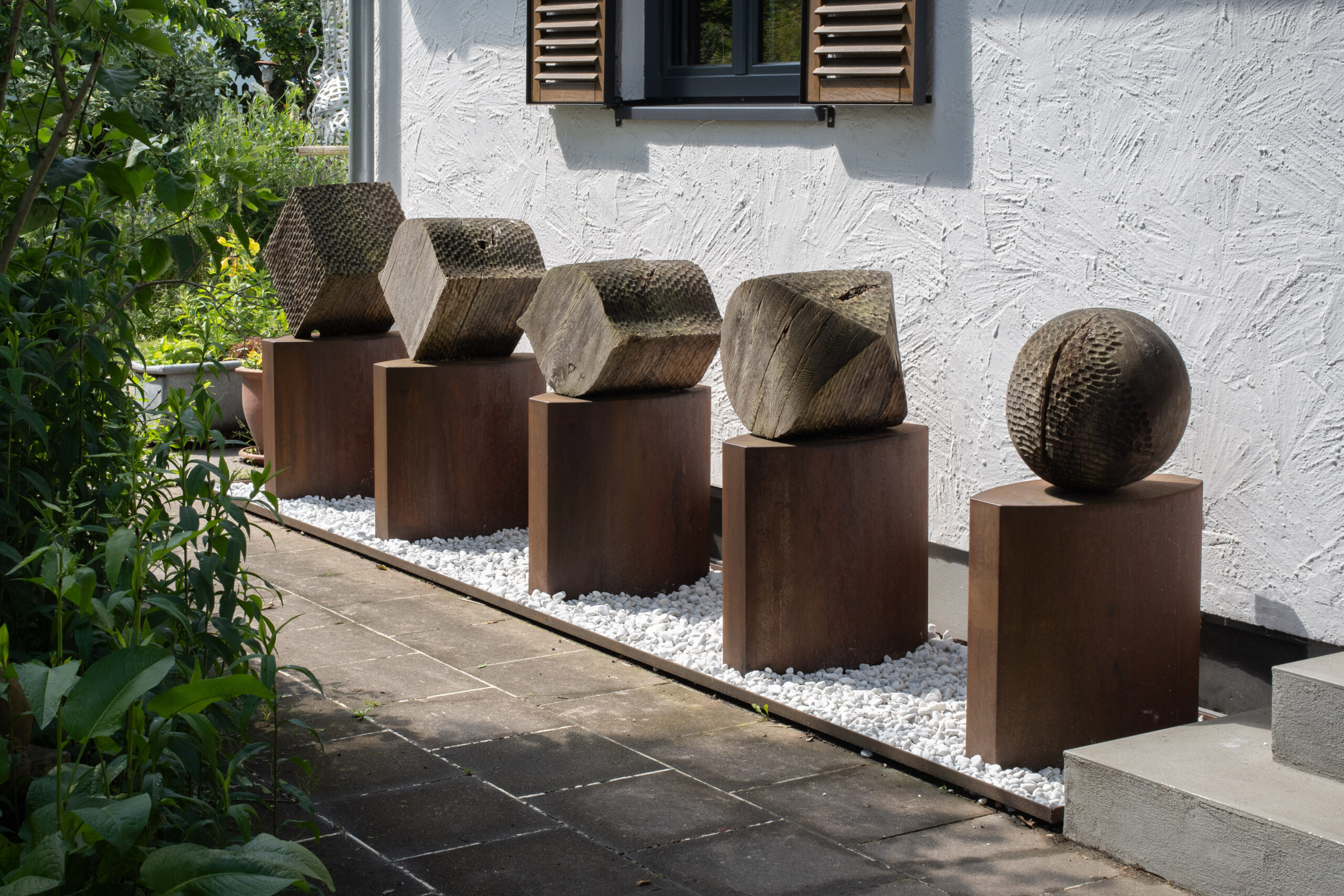 Metamorphose, vom Würfel zur Kugel – Eiche, Stahl, H: 118 cm, B: 450 cm, T: 80 cm